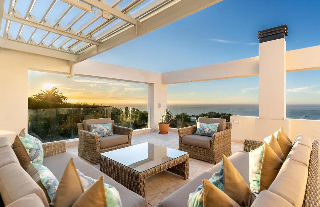 The views of the sea can be enjoyed at this Cape Town accommodation. Bella Riposa Villa comes with a bathroom with a separate toilet and a shower. There is a hairdryer, a shower cap, and bath sheets for guests' comfort.